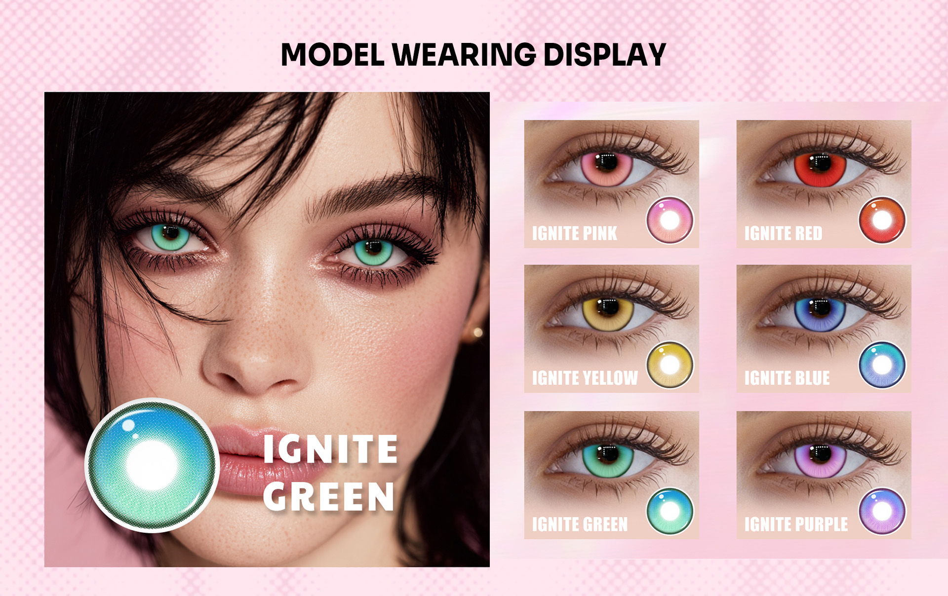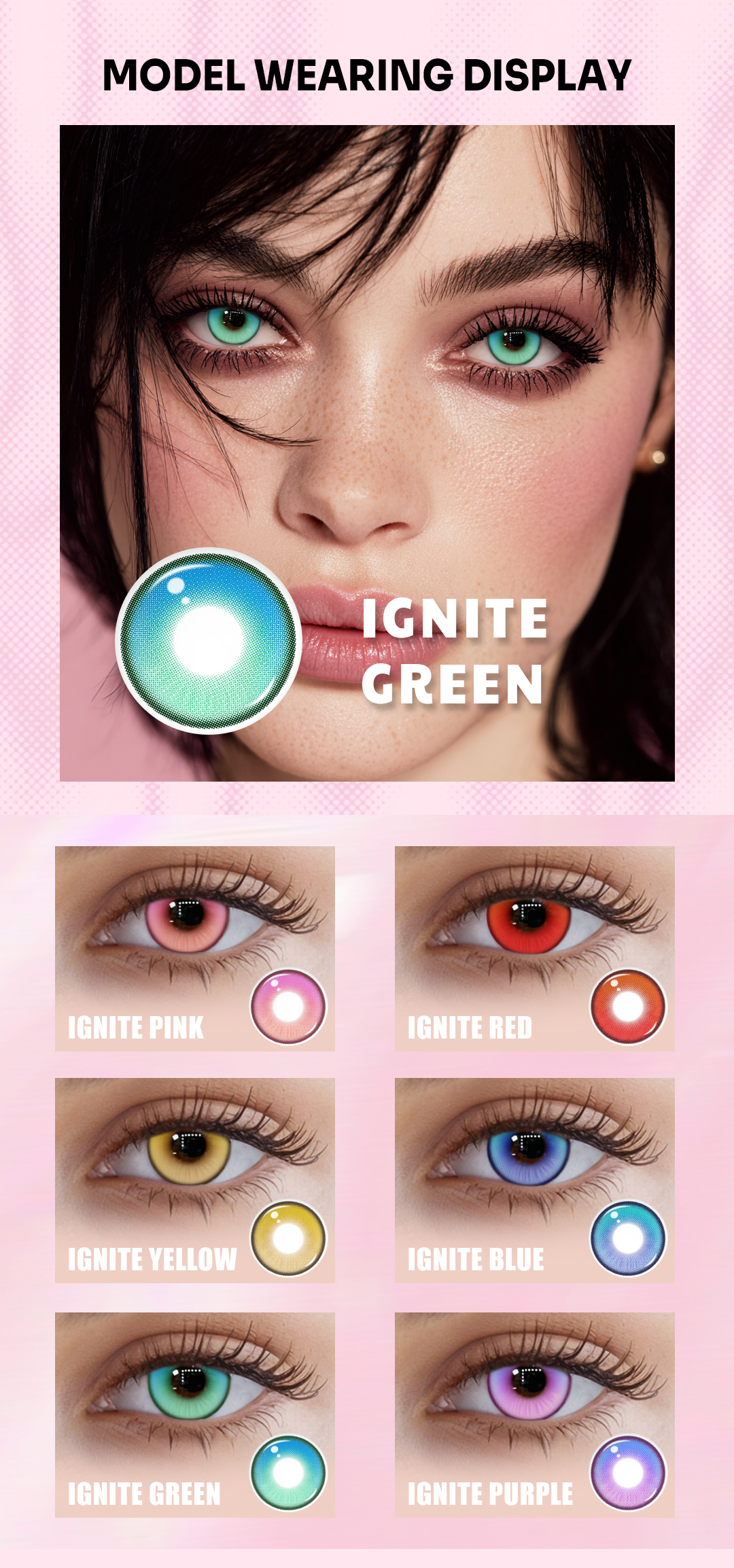Explore our best-selling collection of white, blue, red, black, and green contacts – the most popular shades for cosplay, Halloween, and daily wear. From bold all-white lenses for a creepy effect to vibrant red and yellow contacts for dramatic looks, you’ll find the perfect match to make your eyes stand out. Bring your favorite character to life with vampire, zombie, witch, or werewolf lenses – whether it’s fiery red vampire eyes, eerie witch stares, or wild wolf contacts, these timeless favorites guarantee a show-stopping transformation for Halloween parties, cosplay conventions, or themed events.