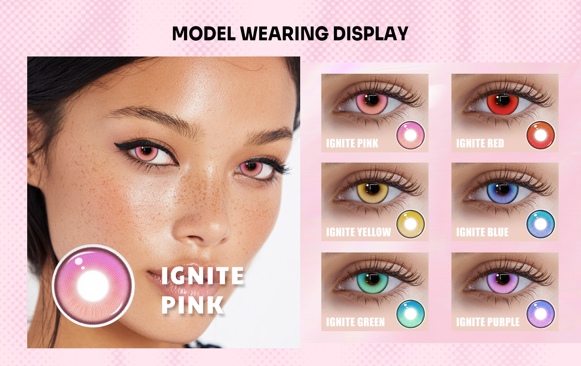 Explore our best-selling collection of white, blue, red, black, and green contacts – the most popular shades for cosplay, Halloween, and daily wear. From bold all-white lenses for a creepy effect to vibrant red and yellow contacts for dramatic looks, you’ll find the perfect match to make your eyes stand out. Bring your favorite character to life with vampire, zombie, witch, or werewolf lenses – whether it’s fiery red vampire eyes, eerie witch stares, or wild wolf contacts, these timeless favorites guarantee a show-stopping transformation for Halloween parties, cosplay conventions, or themed events.