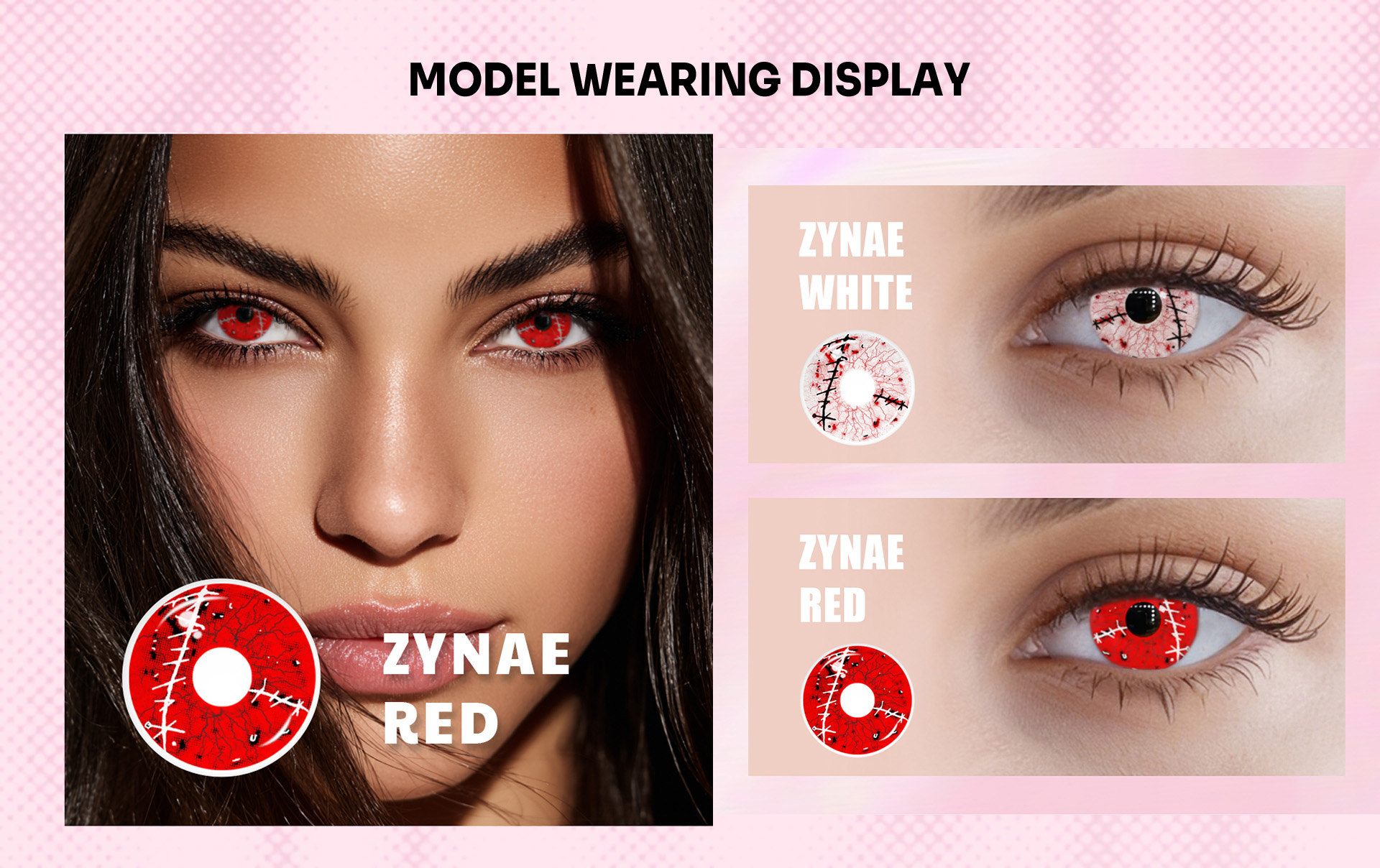 Explore our best-selling collection of white, blue, red, black, and green contacts – the most popular shades for cosplay, Halloween, and daily wear. From bold all-white lenses for a creepy effect to vibrant red and yellow contacts for dramatic looks, you’ll find the perfect match to make your eyes stand out. Bring your favorite character to life with vampire, zombie, witch, or werewolf lenses – whether it’s fiery red vampire eyes, eerie witch stares, or wild wolf contacts, these timeless favorites guarantee a show-stopping transformation for Halloween parties, cosplay conventions, or themed events.